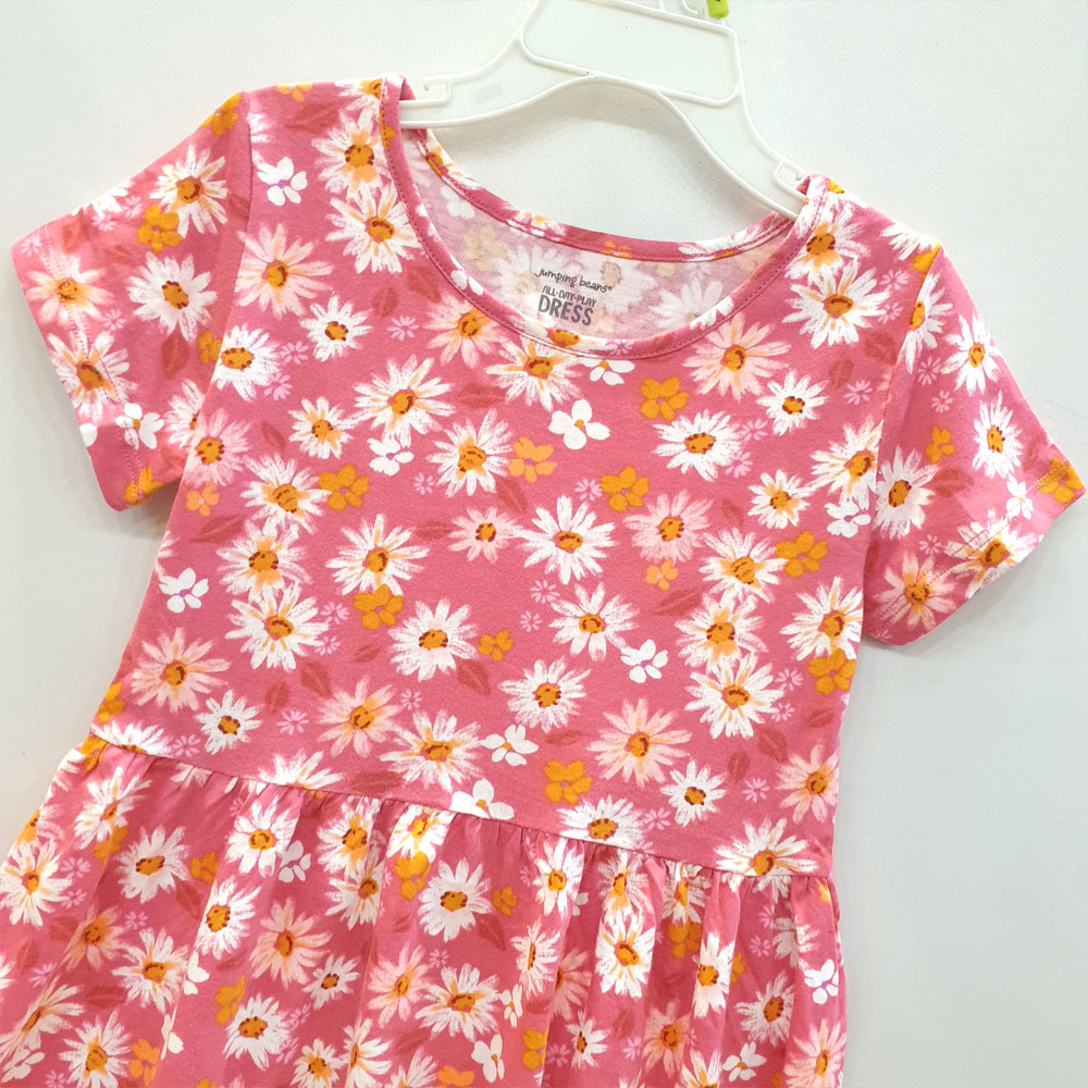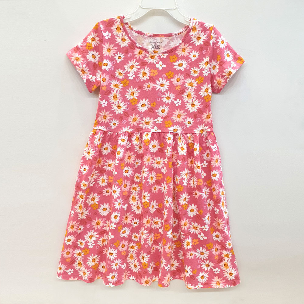 [18kg-48kg] Đầm thun mát nhẹ xinh xắn cho bé gái hàng VNXK màu hồng hoa cúc