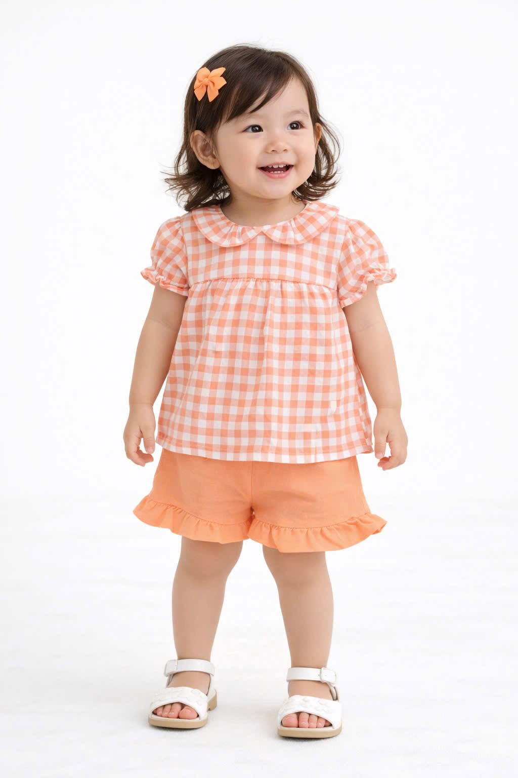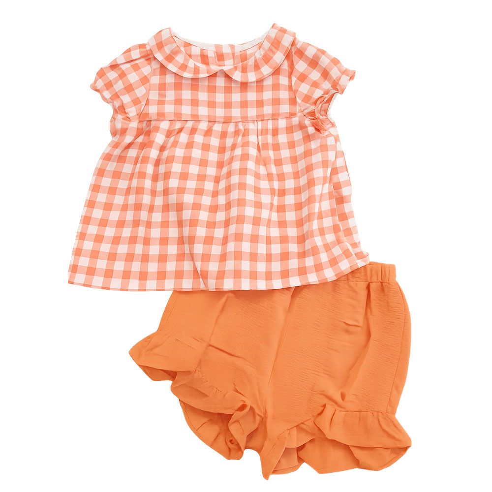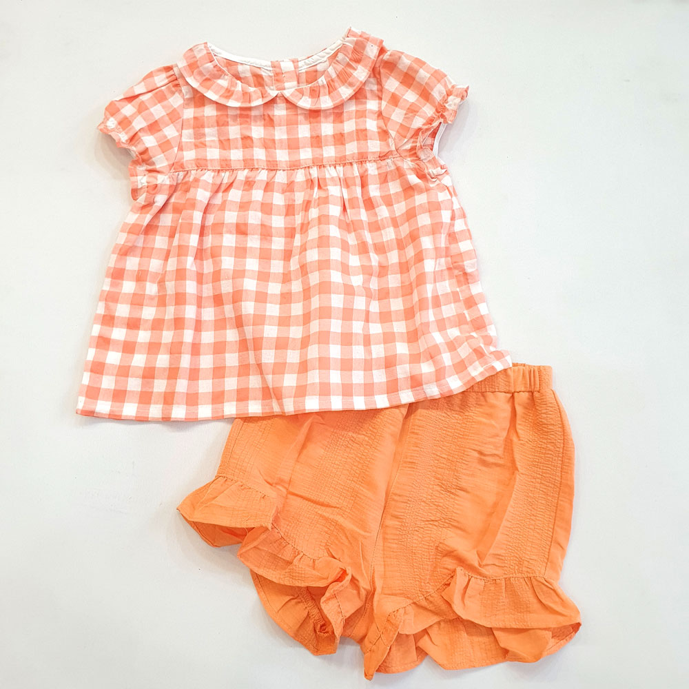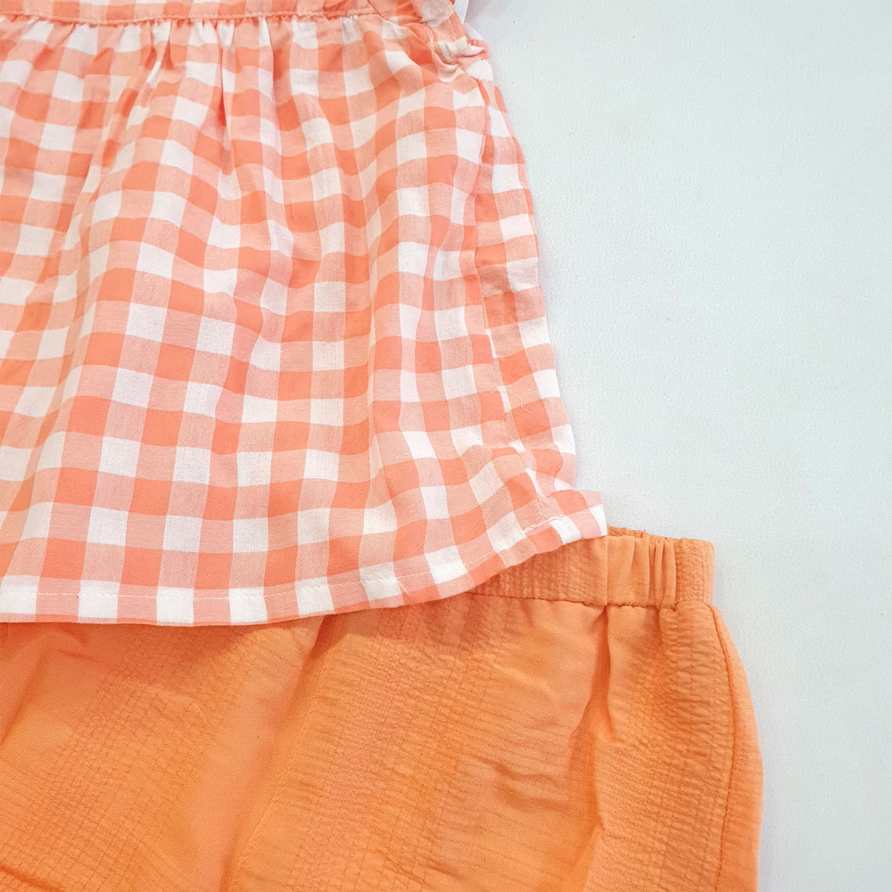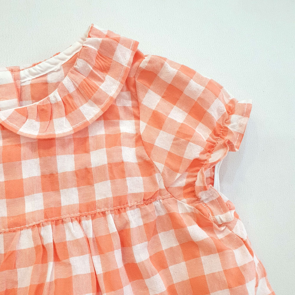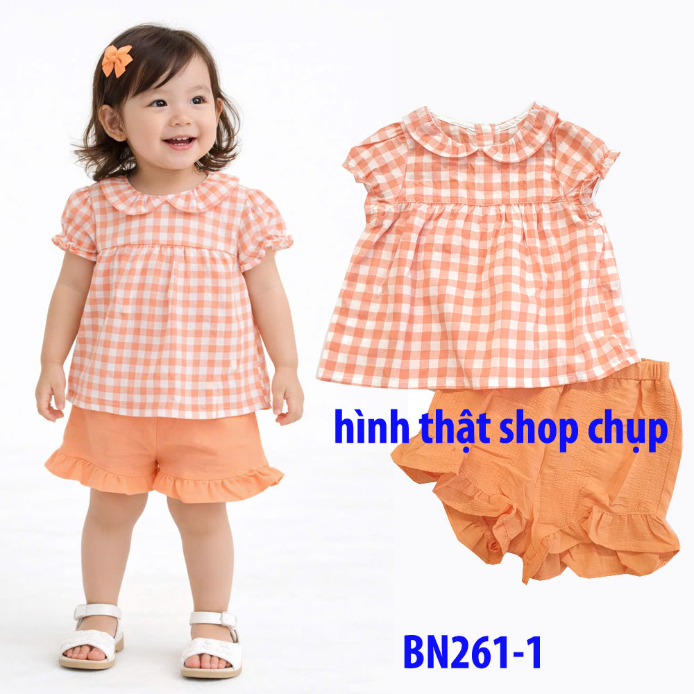[10kg-23kg] Đồ bộ babydoll phong cách tiểu thư vải cotton mỏng mát hàng XK màu carô cam