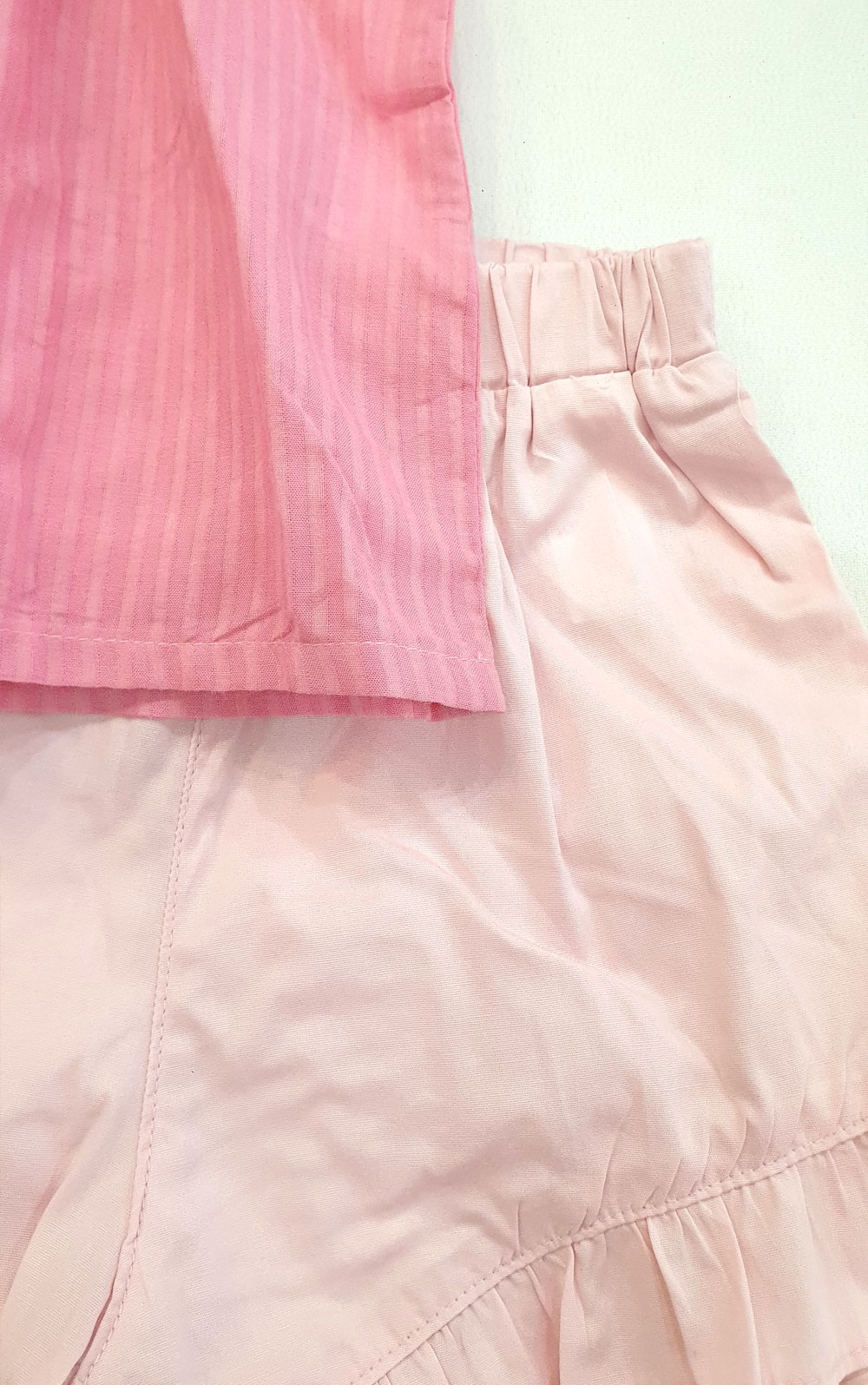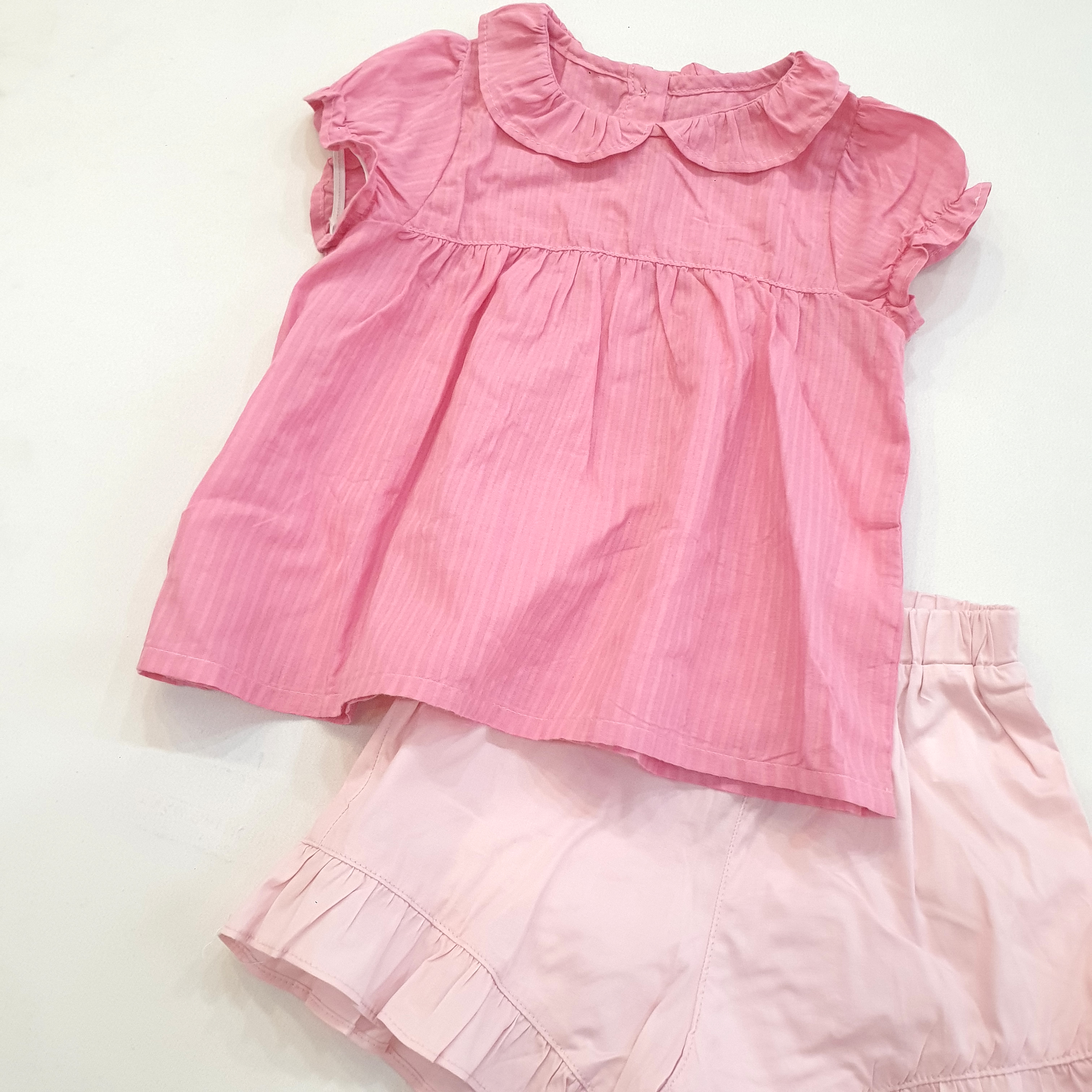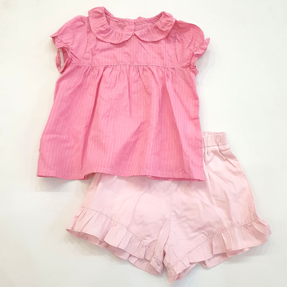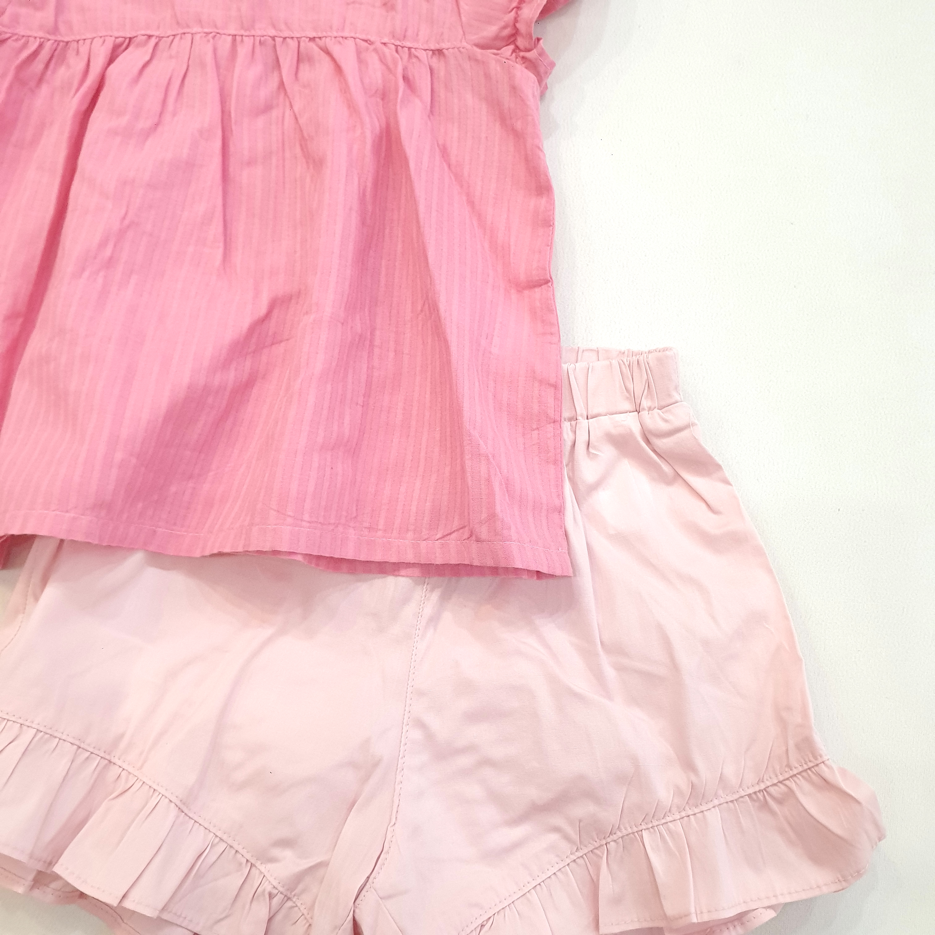 [10kg-23kg] Đồ bộ babydoll phong cách tiểu thư vải cotton mỏng mát hàng XK màu hồng