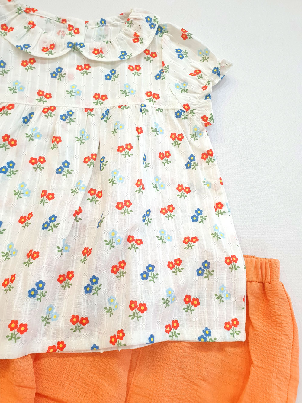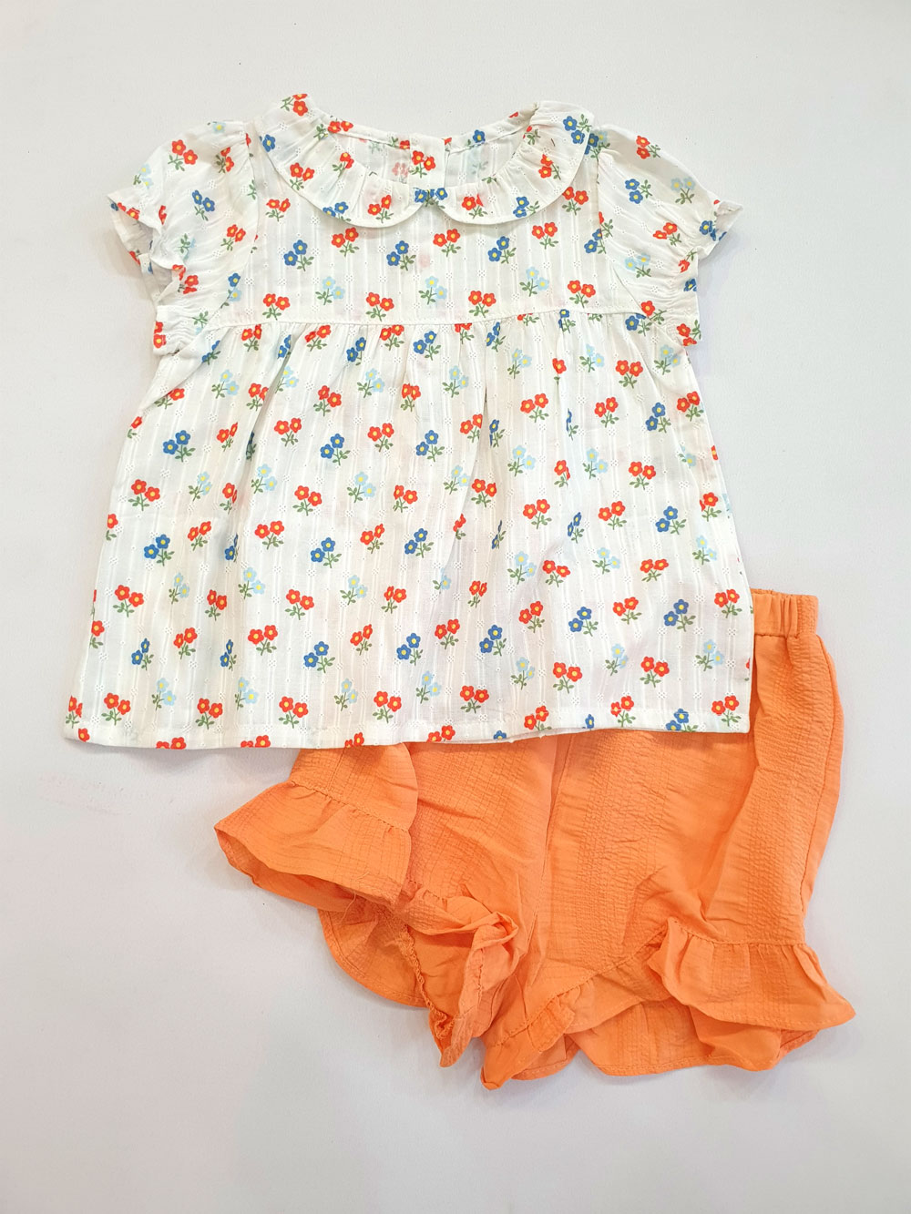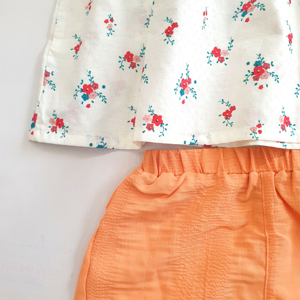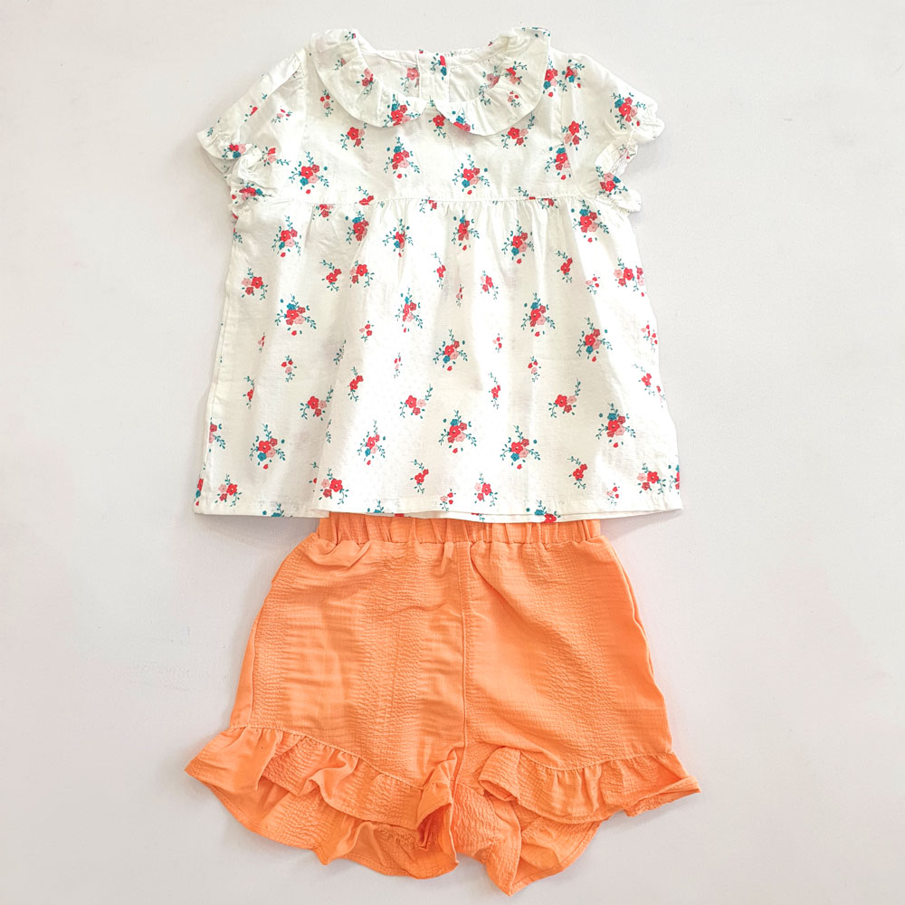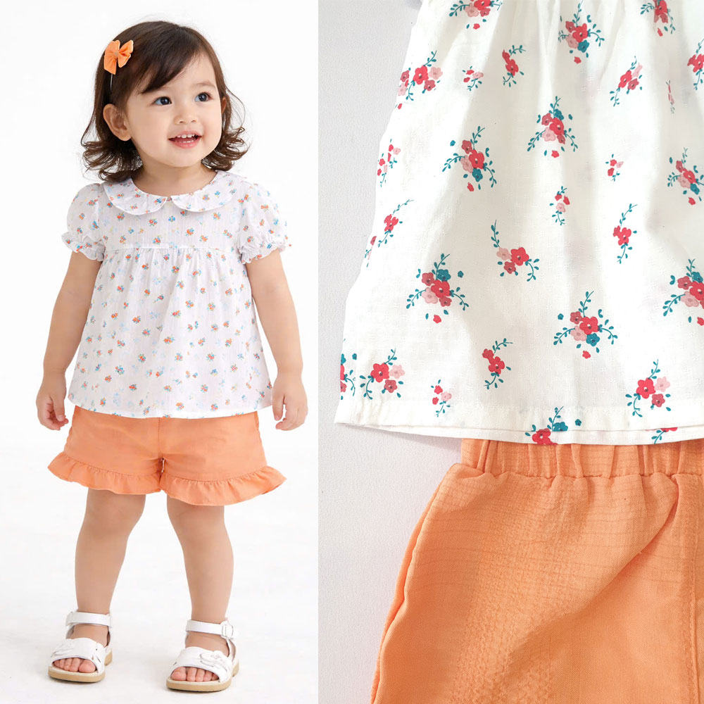 [10kg-23kg] Đồ bộ babydoll phong cách tiểu thư vải cotton mỏng mát hàng XK màu trắng hoa đỏ