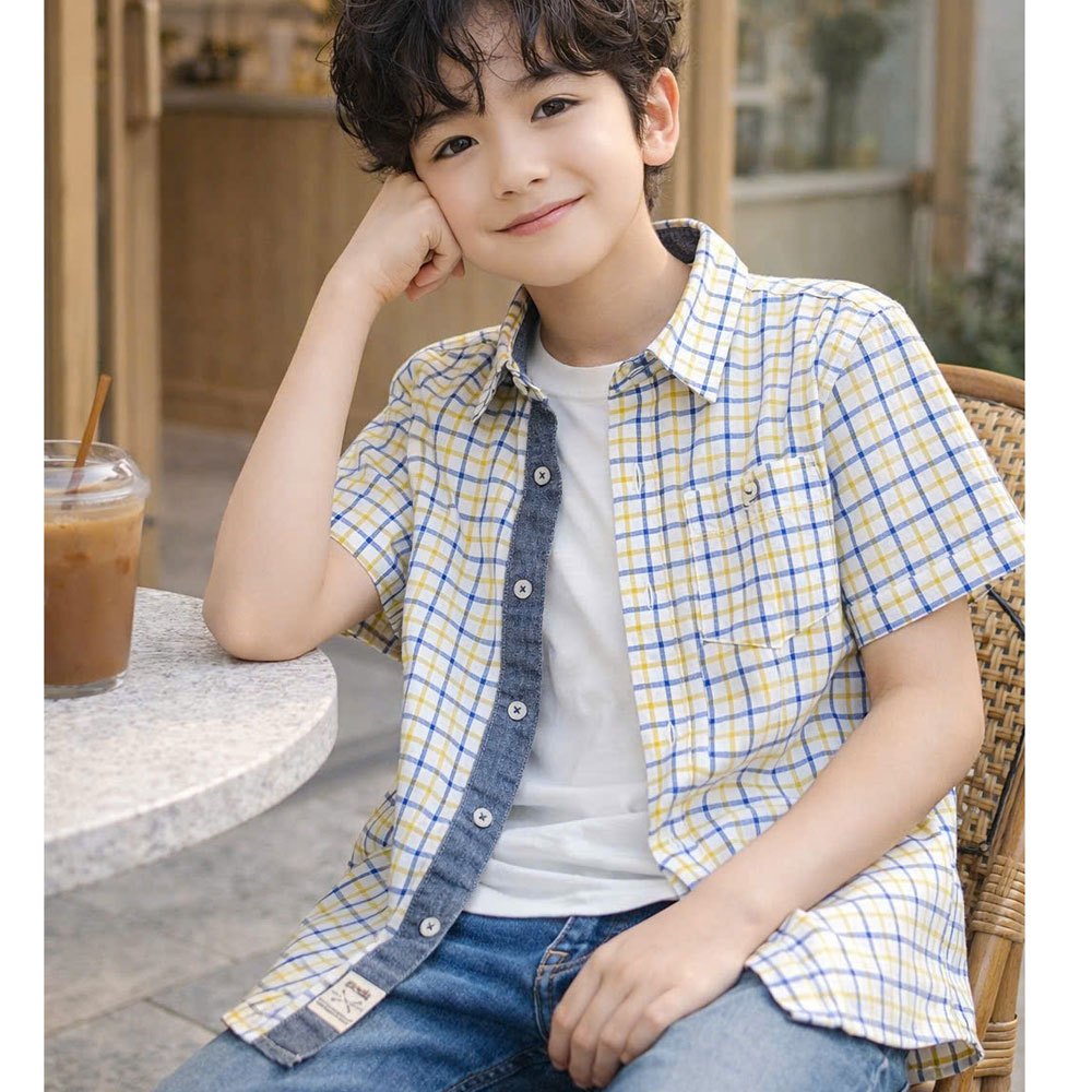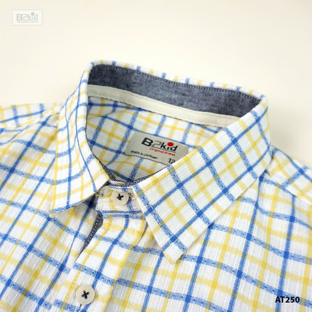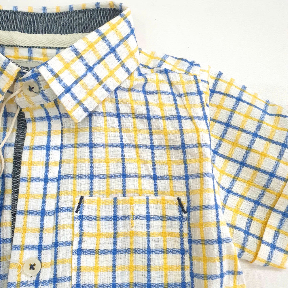 [10kg-38kg] Sơ mi tay ngắn vải cotton thô gân nổi mềm mát hàng VN cao cấp màu caro vàng