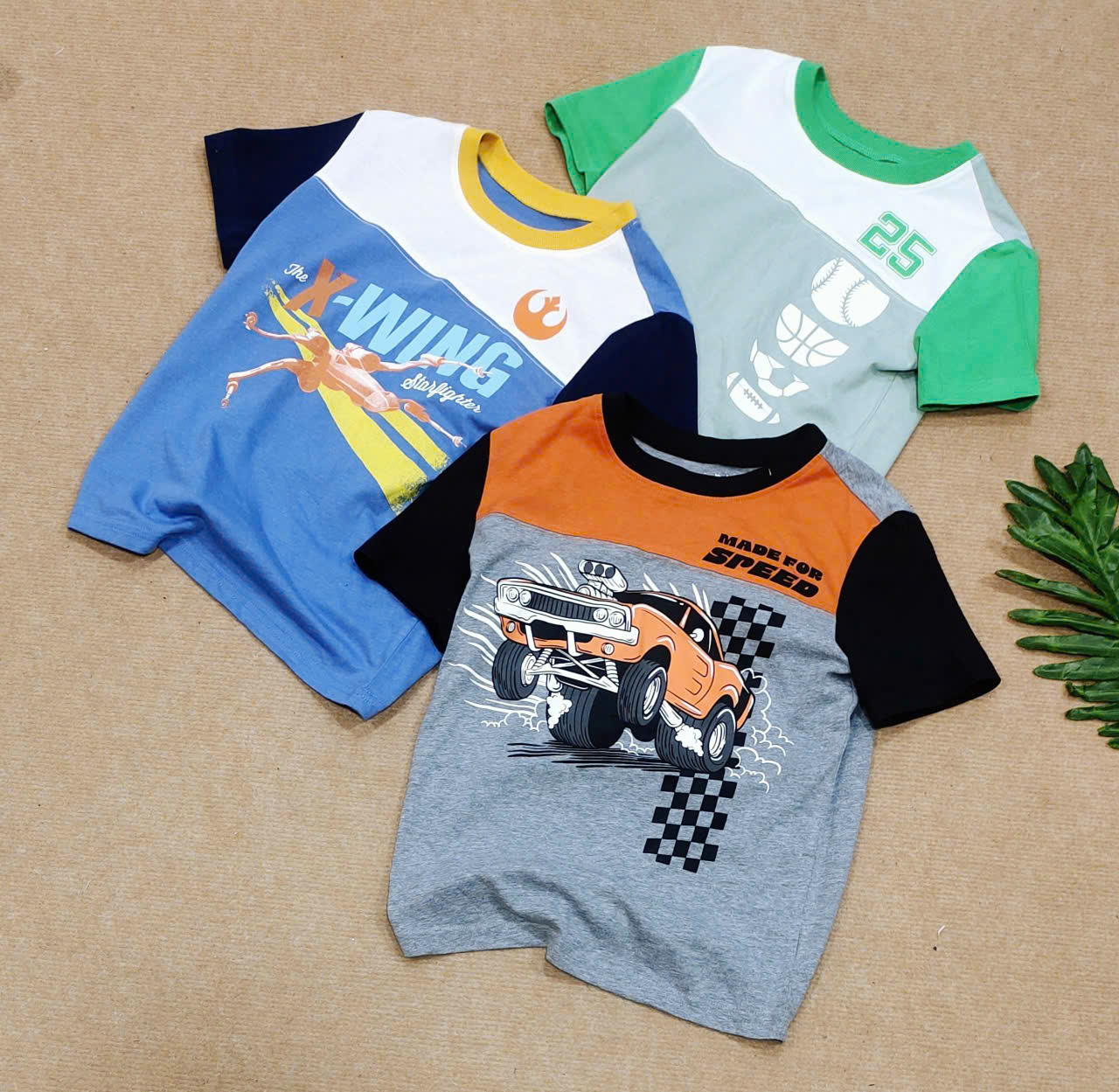 [17kg-37kg] Áo bé trai phối màu color block vải thun cotton mịn mát hàng xuất xin màu xanh X-wing