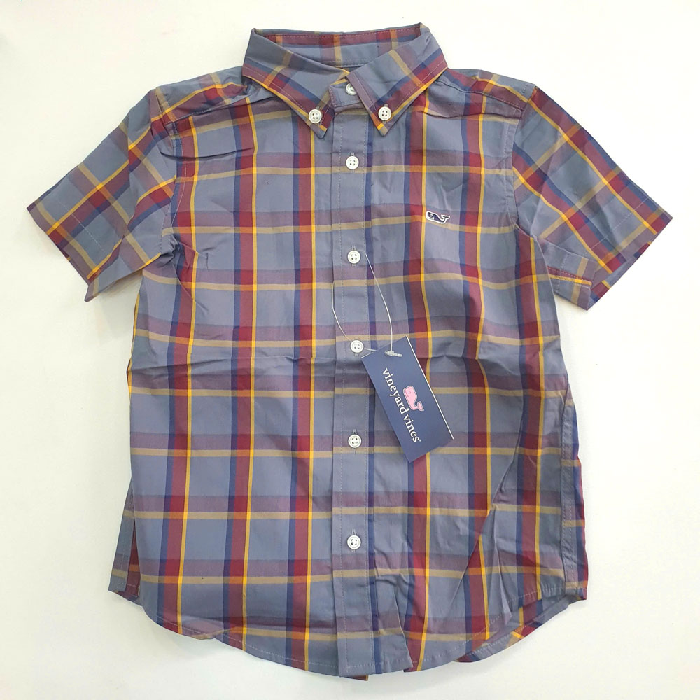 [18kg-52kg] Sơ mi tay ngắn đẹp xuất sắc cho bé hàng VN xuất xịn màu caro xám vàng
