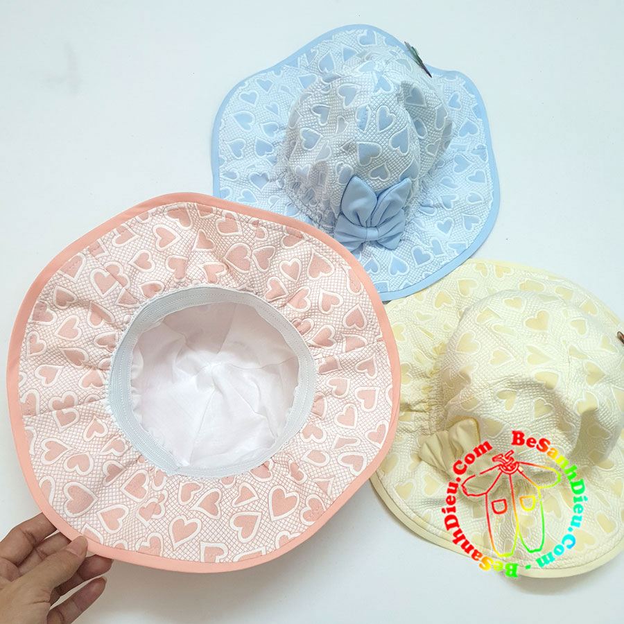 Nón vành bèo cho bé, thiết kế viền thun bên trong giúp nón ôm nhẹ theo vòng đầu rất thoải mái mà bám chắc, giữ nón không cần dây cột. Nón vừa giúp bảo vệ bé trước nắng gió vừa làm duyên cho bé, bé sẽ thật đáng yêu khi đội những chiếc mũ rộng vành như thế này.