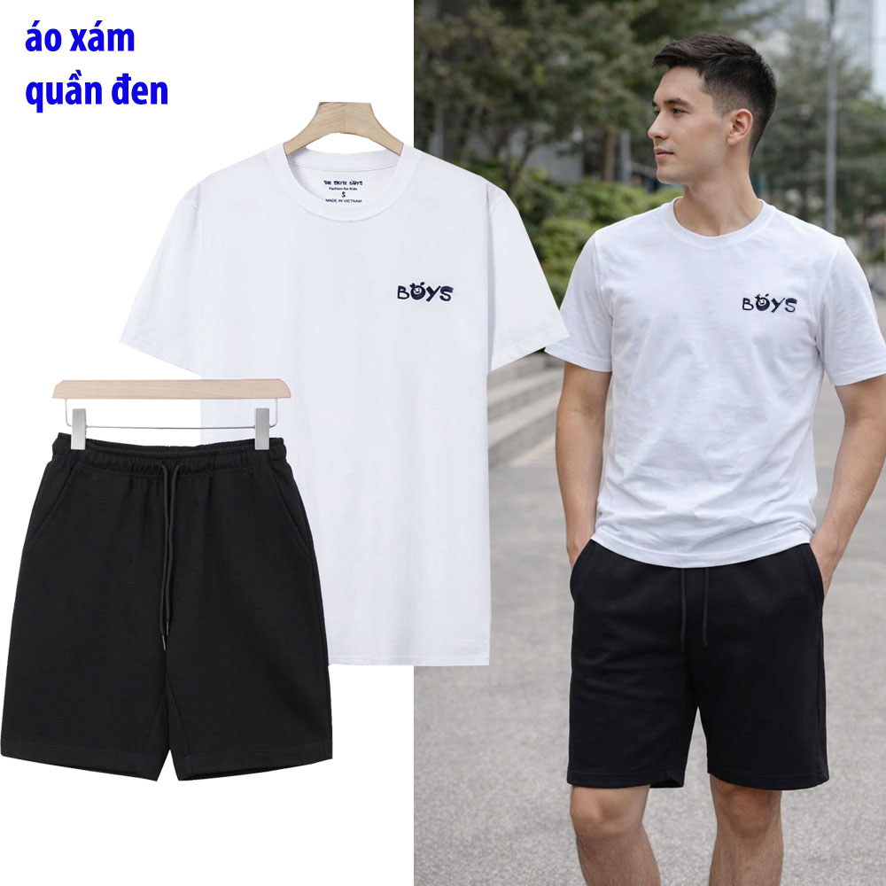 [48kg-73kg] Đồ bộ thun nam size bố con hàng VN áo thun cotton quần thun da cá xịn màu trắng