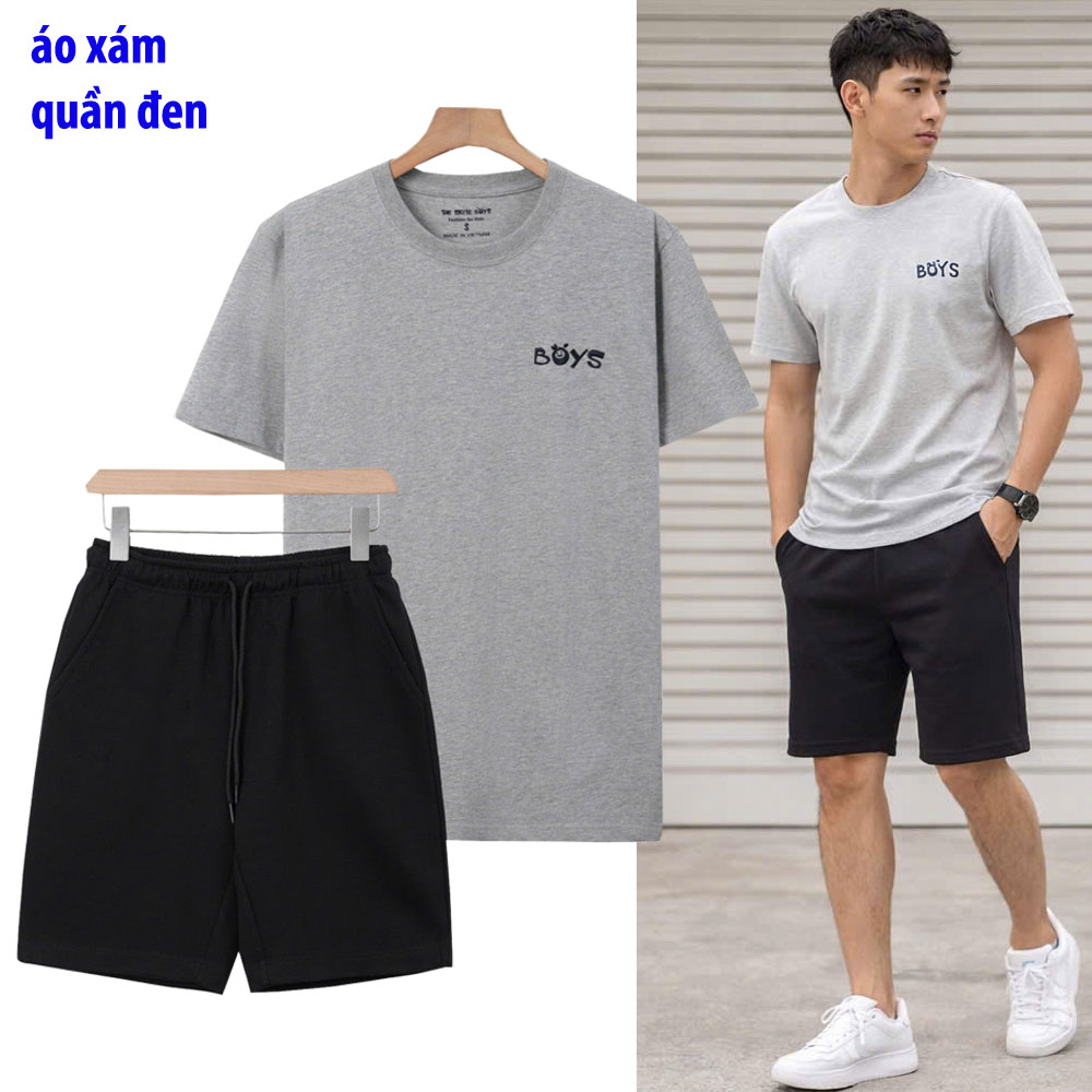 [48kg-73kg] Đồ bộ thun nam size bố con hàng VN áo thun cotton quần thun da cá xịn màu xám