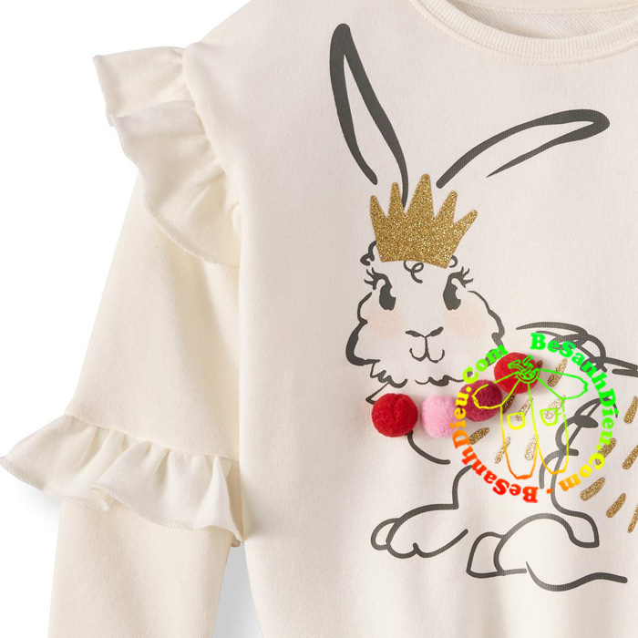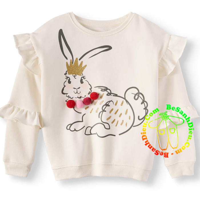 Áo tay dài thun da cá vừa đủ ấm nhẹ trang trí hình 3D cực độc cực xinh hàng Cambodia XK từ 17kg đến 24kg màu trắng kem hình thỏ