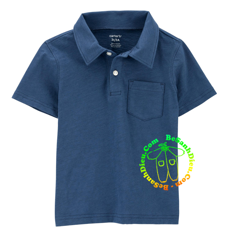 Áo thun cổ polo cho bé trai vải mịn mát từ 19kg đến 21kg màu xanh đen túi