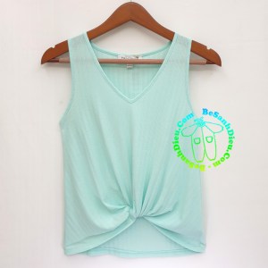 Áo thun nữ kiểu ba lỗ, may cuộn vạt rất mỹ thuật. Mặc lên vừa xinh xắn, trẻ trung lại cực thoải mái. Áo phối với quần short, jean dài hay chân váy đều rất đẹp.