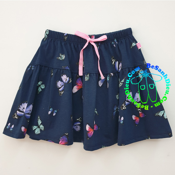 Chân váy liền quần cho bé gái vải thun cotton mịn mát hàng VN từ 21kg đến 24kg màu xanh đen in bướm