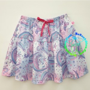 - Bên ngoài là kiểu chân váy xòe xinh xắn, bên trong may lót liền quần, bé mặc như quần short thông thường, dễ dàng kết hợp với các mẫu áo có sẵn trong tủ đồ của bé.