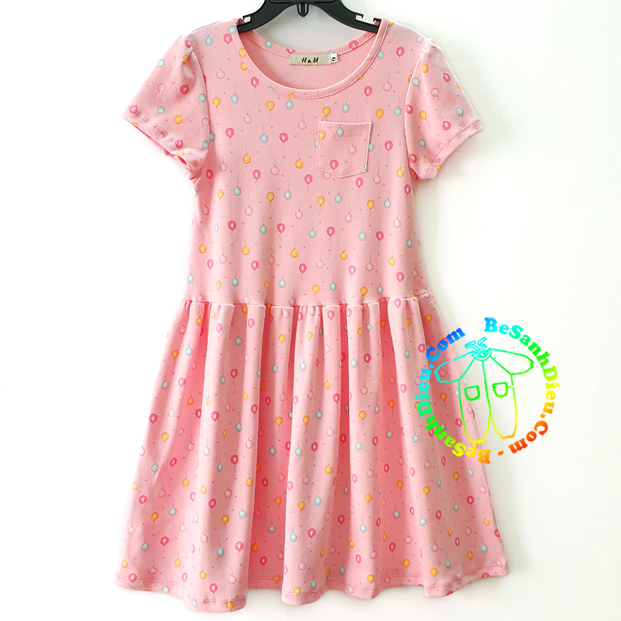 Đầm bé gái lớn vải thun cotton mềm mịn, mát rượi xinh yêu từ 26kg đến 30kg màu hồng bong bóng
