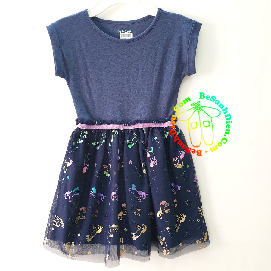Đầm thun phối voan xinh rực rỡ thoải mái nhẹ tênh cho bé hàng xuất xịn từ 20kg đến 32kg màu xanh đen