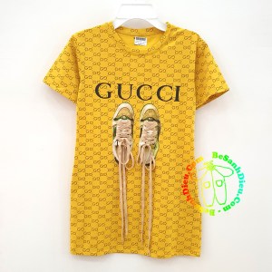 Đầm thun phom suông in hình giầy ngộ nghĩnh mát nhẹ từ 29kg đến 34kg màu vàng