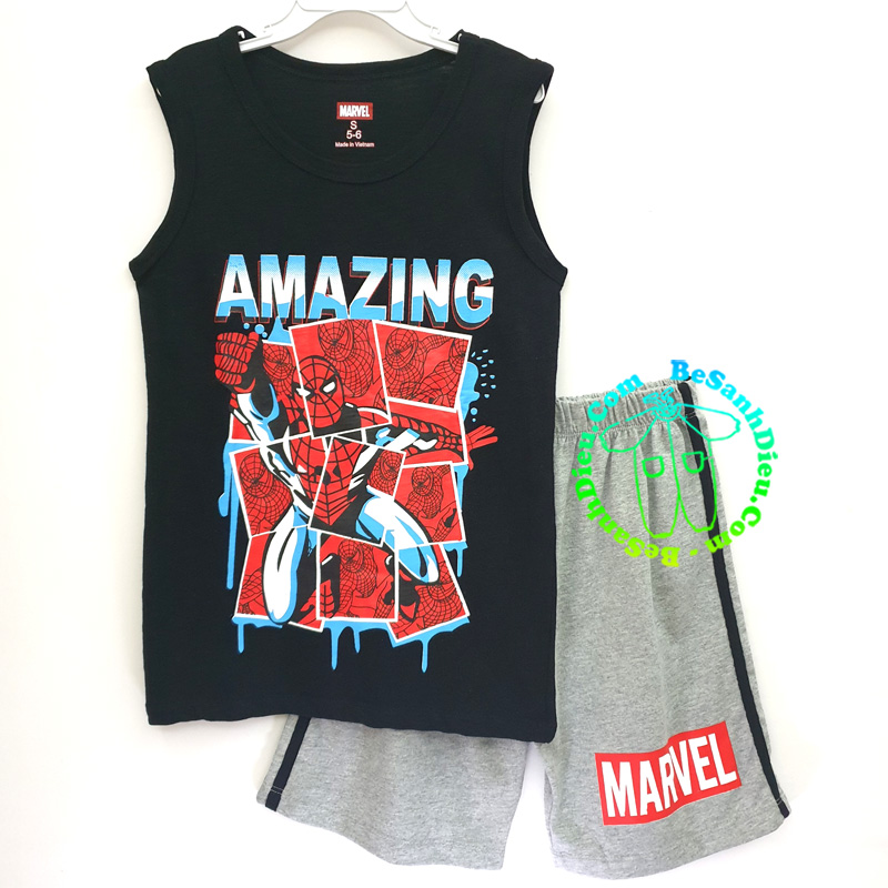 Đồ bộ ba lỗ mùa hè cho bé trai hàng VN vải thun cotton mịn mát từ 23kg đến 29kg màu đen