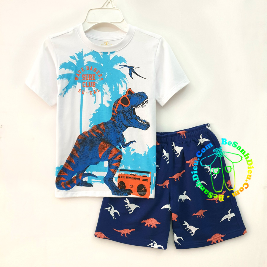 Đồ bộ quần thun da cá cho bé mặc đi học, đi chơi từ 40kg đến 48kg màu trắng khủng long