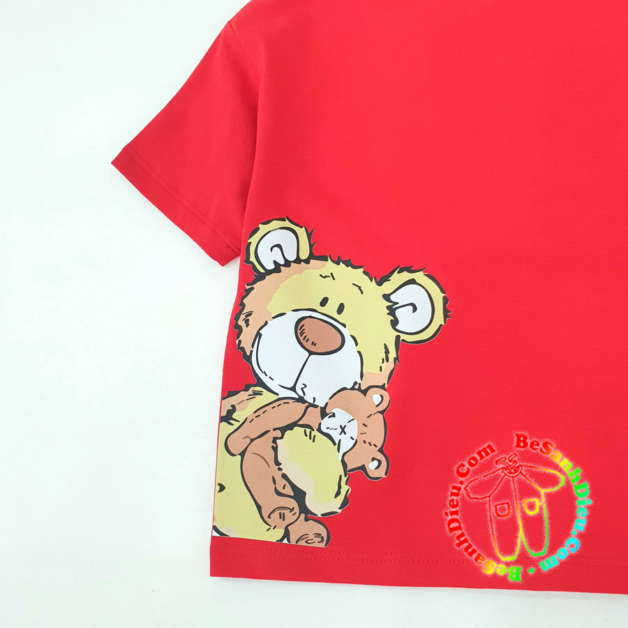 [12kg-14kg] Áo phom rộng vải thun cotton 4 chiều xịn thích hợp cả bé trai và gái màu đỏ