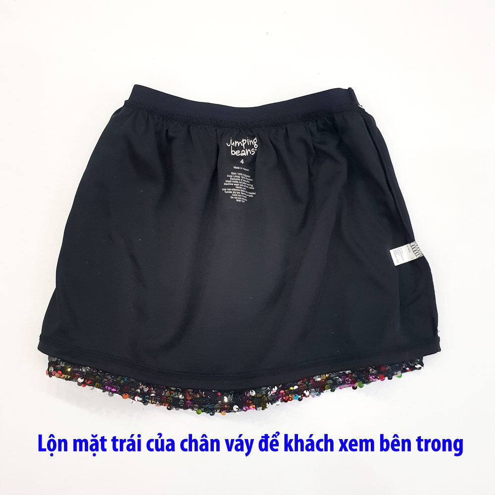 [16kg-50kg] Chân váy kết kim sa lấp lánh lót thun không liền quần cho bé gái tông màu đen