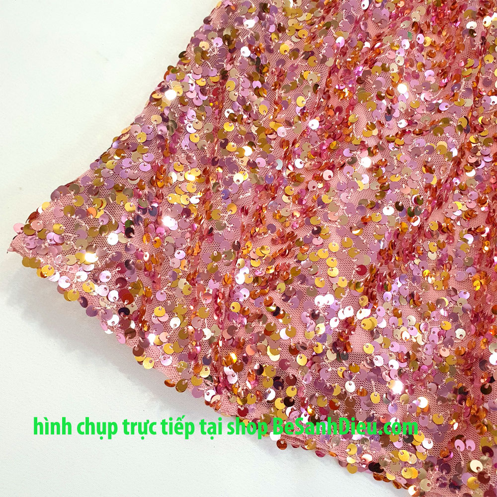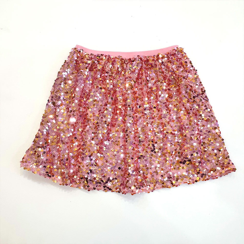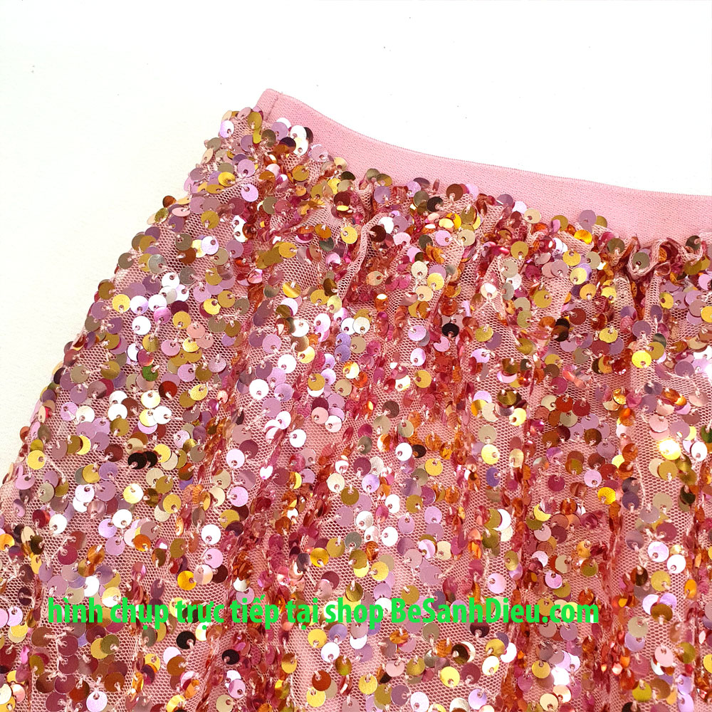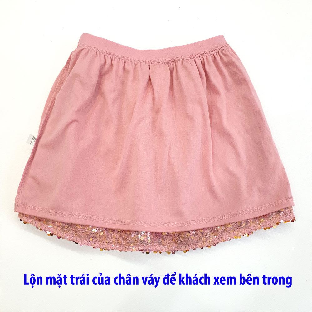 [18kg-43kg] Chân váy kết kim sa lấp lánh lót thun không liền quần cho bé gái màu hồng nude