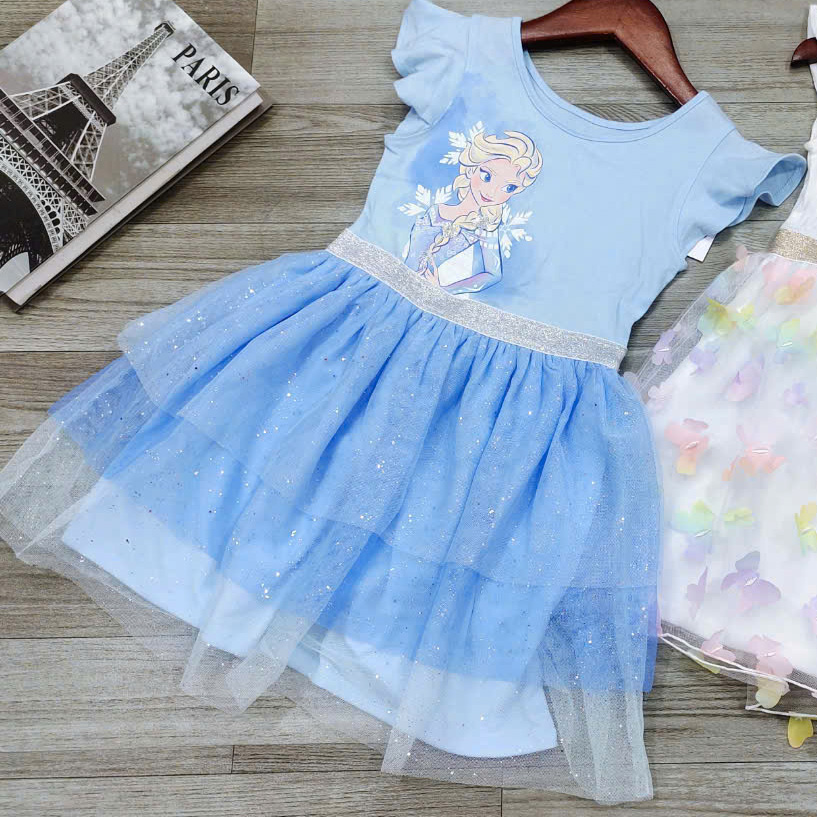 [17kg-33kg] Váy đầm công chúa Elsa vải thun phối voan cực xinh hàng VNXK màu xanh
