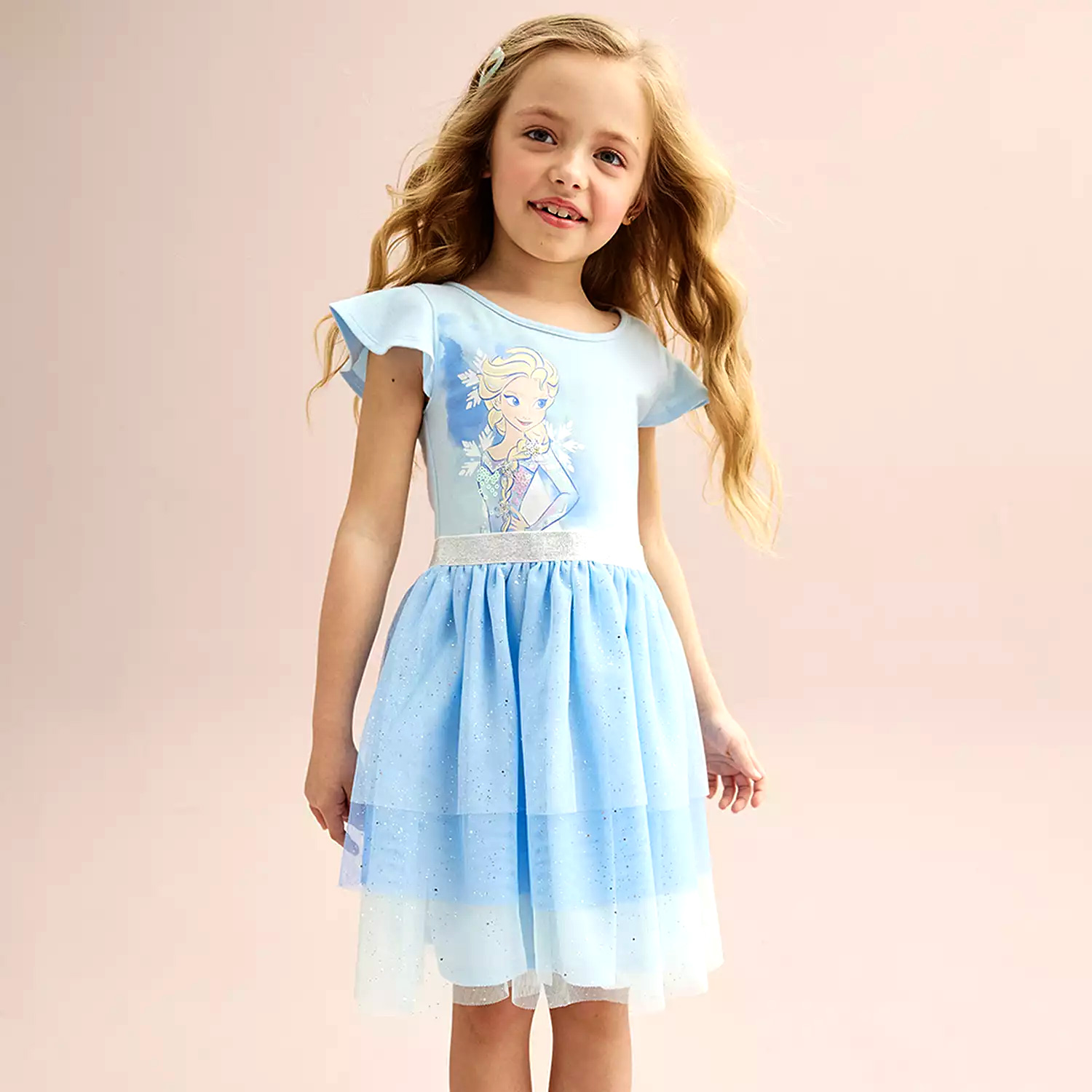 Đầm thun phối voan in hình các nhân vật hoạt hình Disney cho bé gái, vừa xinh xắn, rực rỡ lại mát rượi, nhẹ tênh, bé có thể tung tăng trong chiếc áo đẹp cả ngày mà vẫn thoải mái.