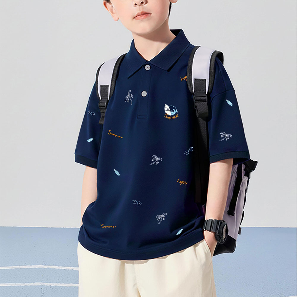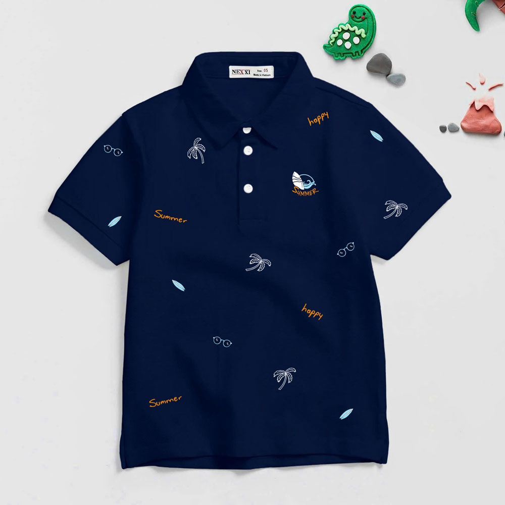 [11kg-50kg] Áo polo, áo thun có cổ cho bé trai và bé gái vải mịn đẹp mát màu xanh đen