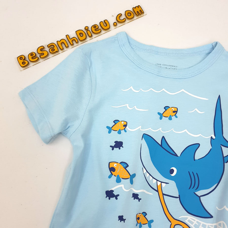[10kg-12kg] Áo bé trai size nhí vải thun cotton mịn mát màu xanh cá mập