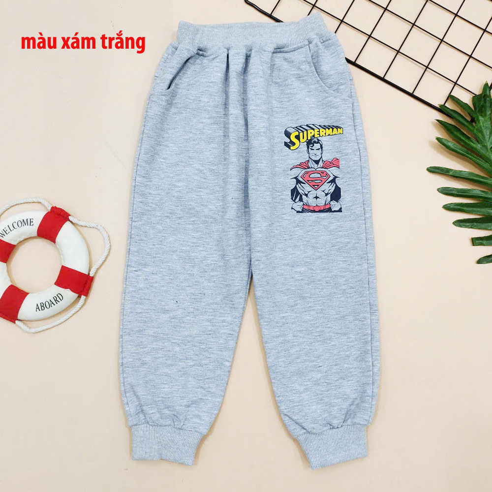 [10kg-24kg] Quần dài thun da cá dày vừa ấm áp thoáng khí cho bé trai và bé gái hàng VN cao cấp màu xám trắng Superman