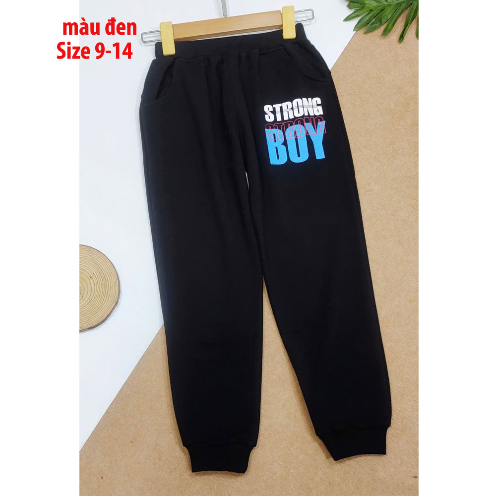 [22kg-52kg] Quần dài thun da cá dày vừa ấm áp thoáng khí cho bé trai và bé gái hàng VN cao cấp màu đen Strong
