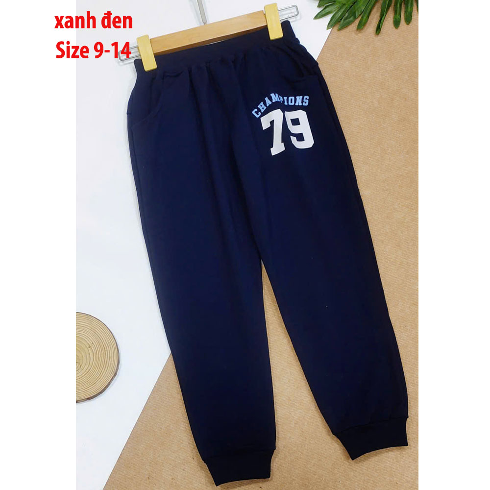[22kg-52kg] Quần dài thun da cá dày vừa ấm áp thoáng khí cho bé trai và bé gái hàng VN cao cấp màu xanh đen 79