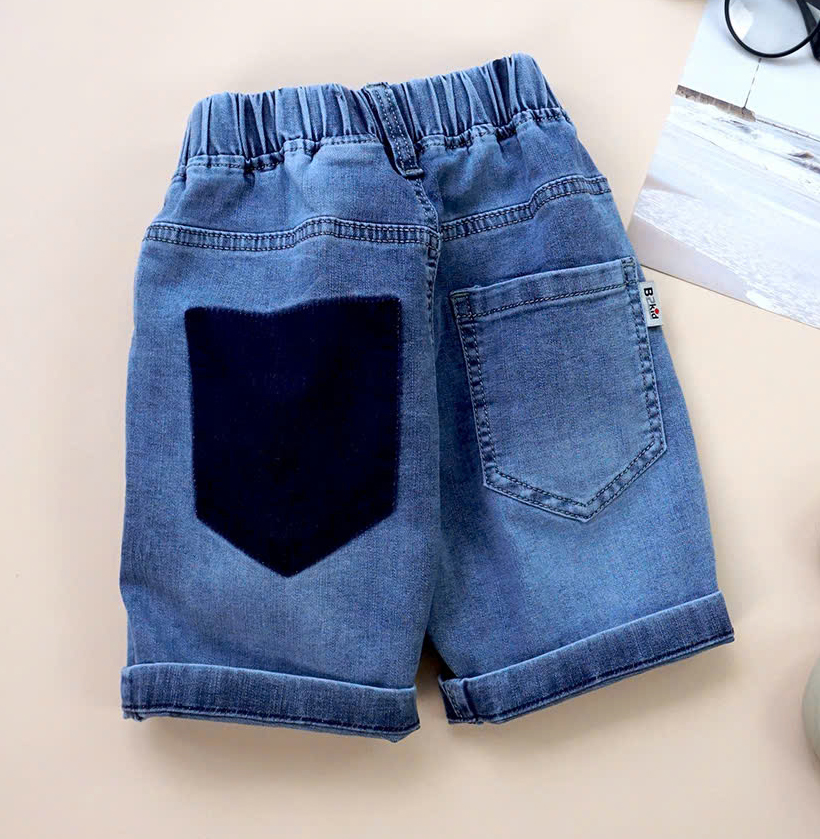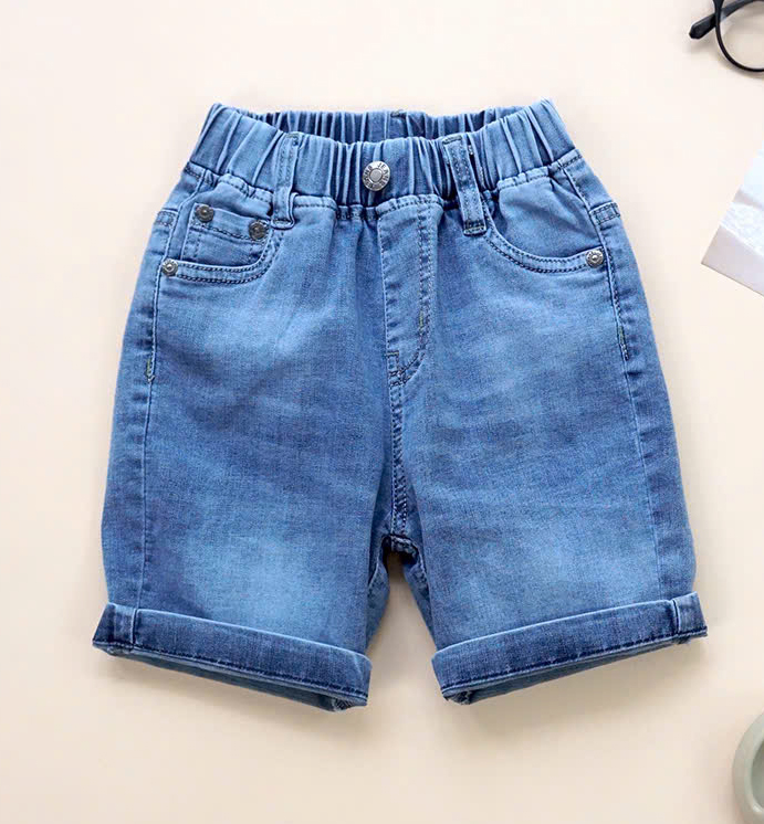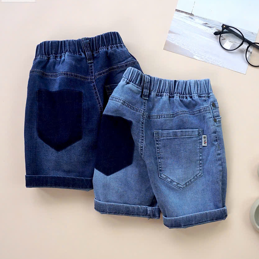 [12kg-44kg] Quần short jean lưng thun cho bé vải co giãn rất đẹp màu xanh vừa