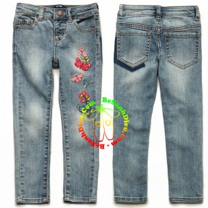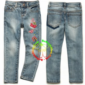 Quần jean dài bé gái hiệu Kiabi, hàng Cambodia XK. Chất vải jean thun, dày vừa, mềm mại, co giãn nhẹ nhàng, mặc rất thoải mái. Phom quần Slim fit, ôm dáng nhưng nhẹ tênh, đùi trái thêu hình hoa bướm rất mỹ thuật, quần màu xanh nhạt vừa, dễ phối áo. Lưng quần có thun rút tăng đơ, dễ dàng điều chỉnh độ rộng của quần cho thật vừa với bụng bé.