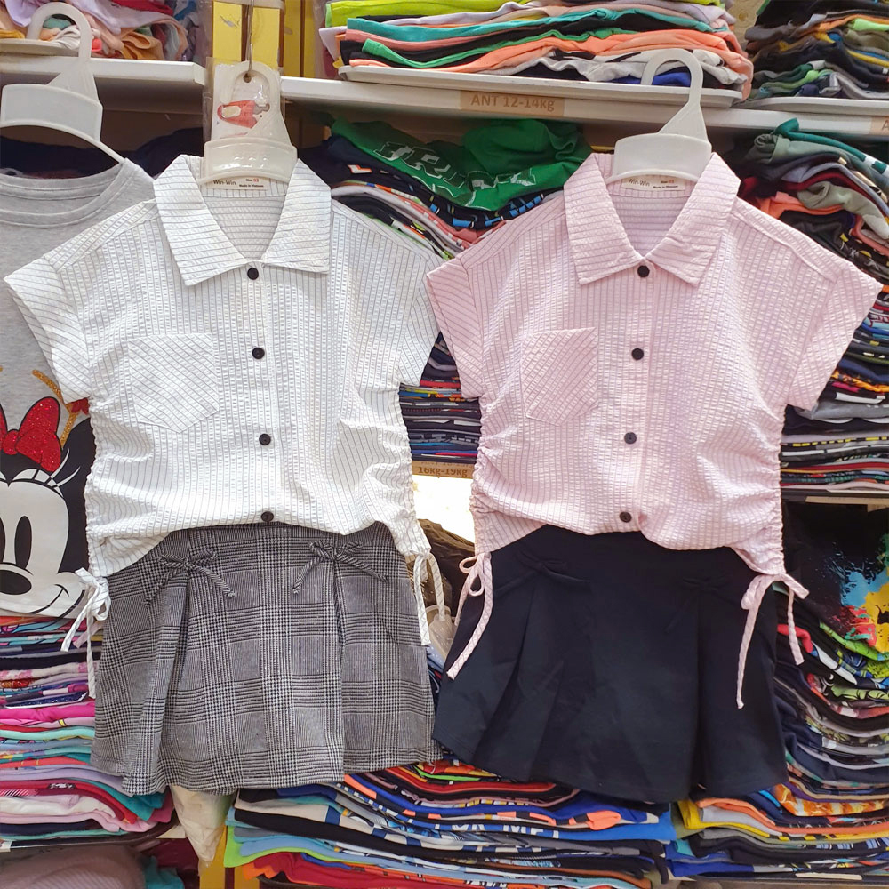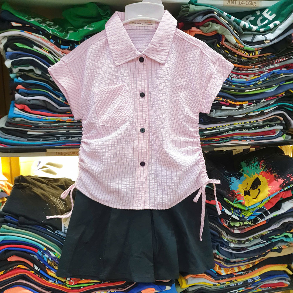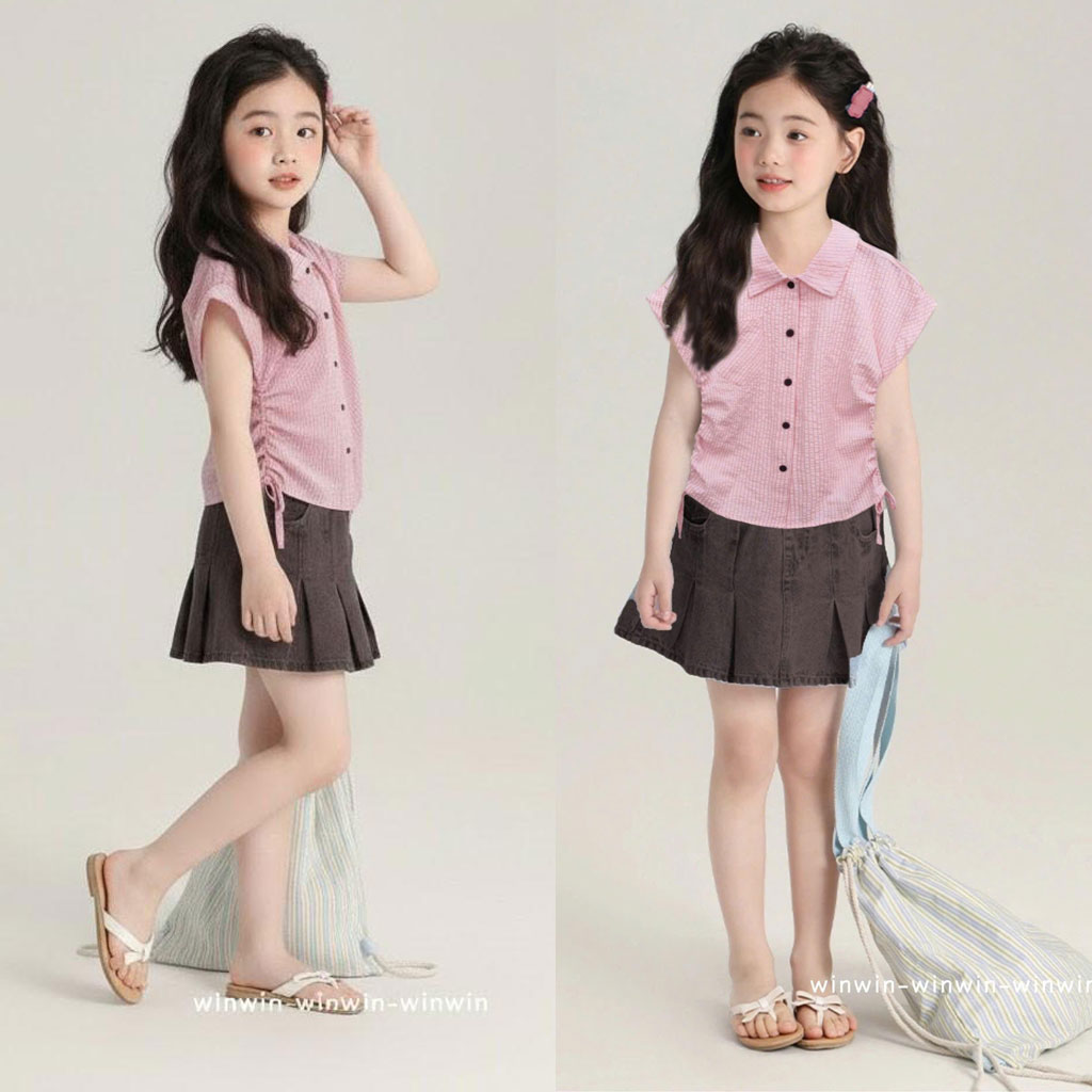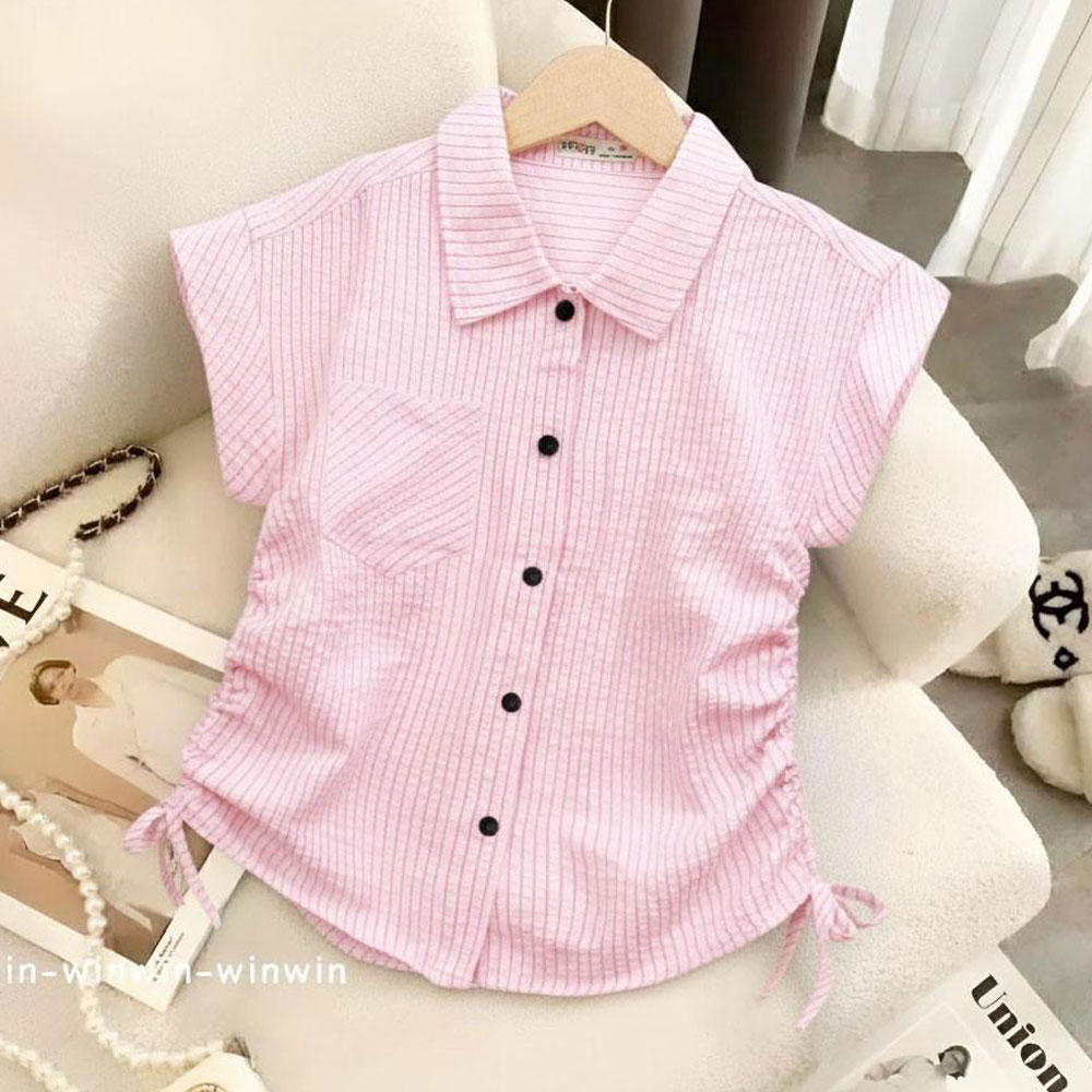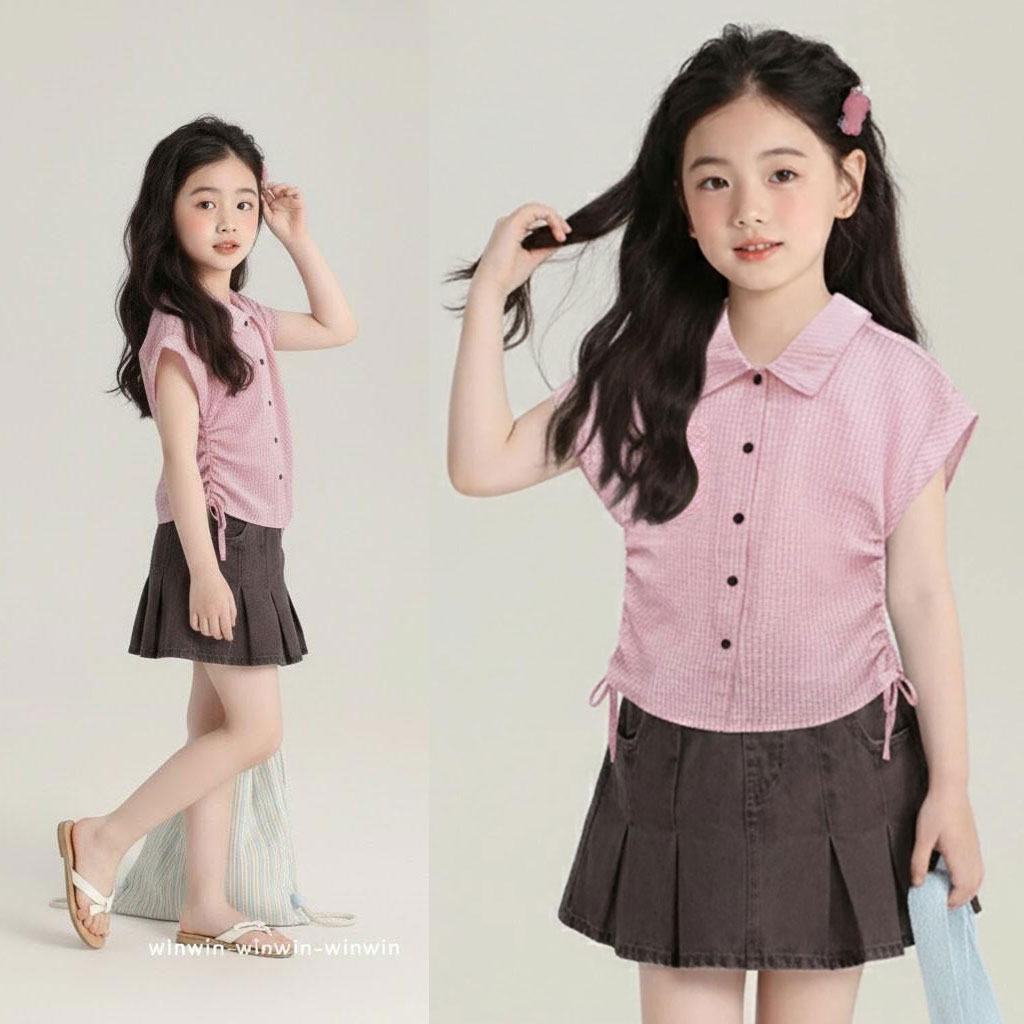[13kg-56kg] Sơ mi kiểu cho bé gái thiết kế nhún eo mặc được 2 kiểu cực xinh màu hồng