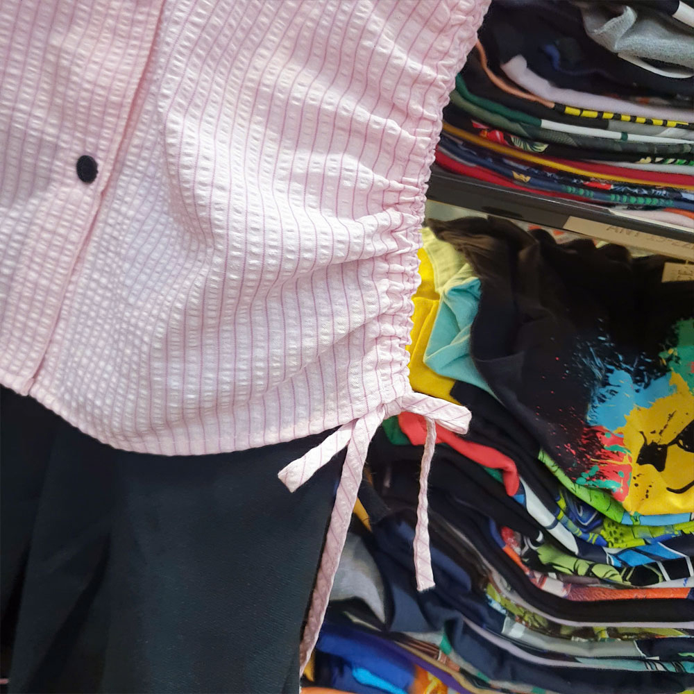 - Thiết kế rút dây, thắt nơ 2 bên eo độc đáo, nếu không rút nhún sẽ tạo thành một phiên bản khác, mặc được 2 kiểu.