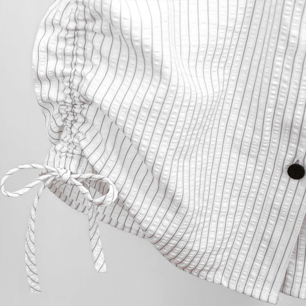 - Thiết kế rút dây, thắt nơ 2 bên eo độc đáo, nếu không rút nhún sẽ tạo thành một phiên bản khác, mặc được 2 kiểu.