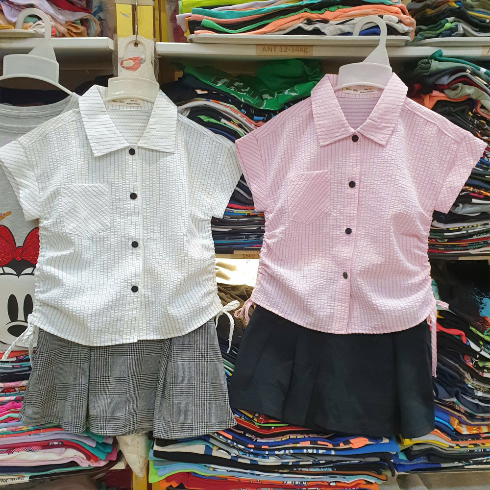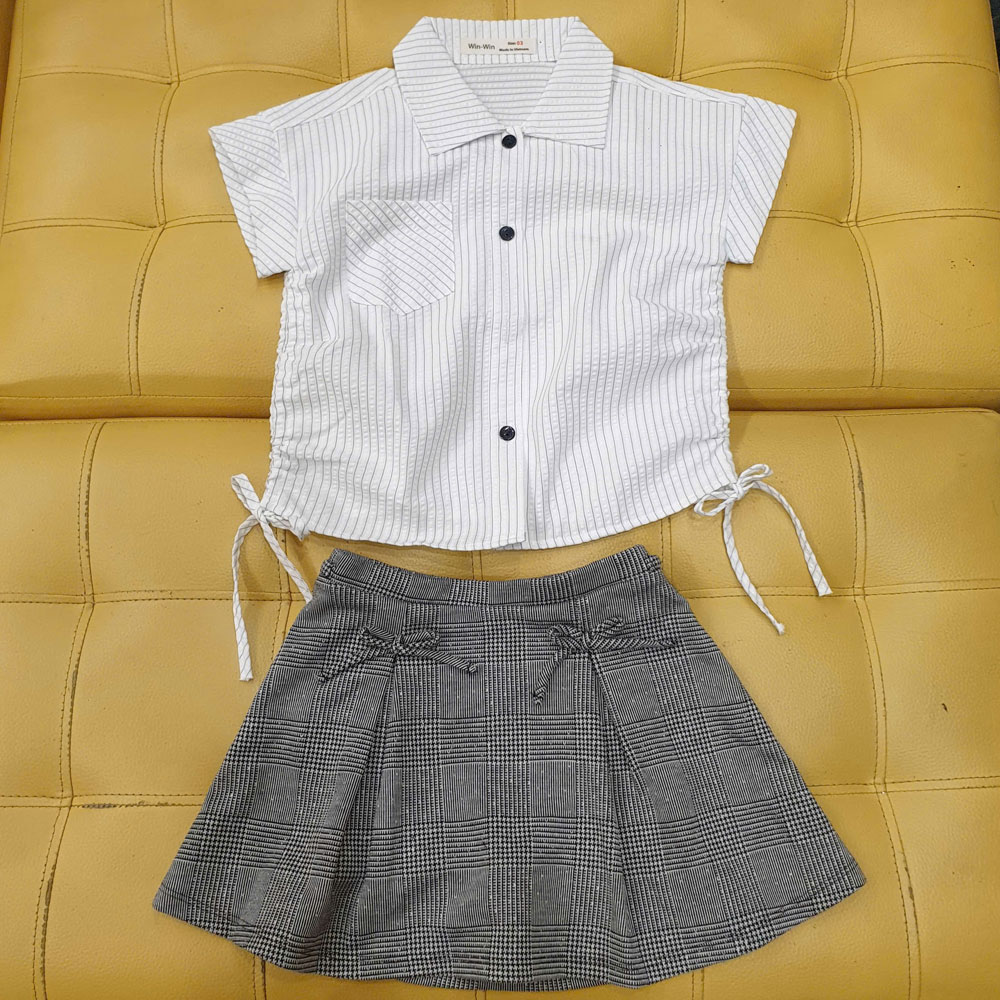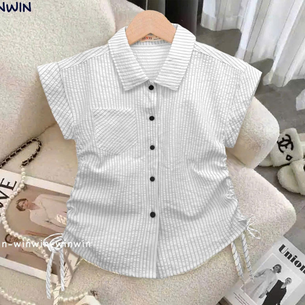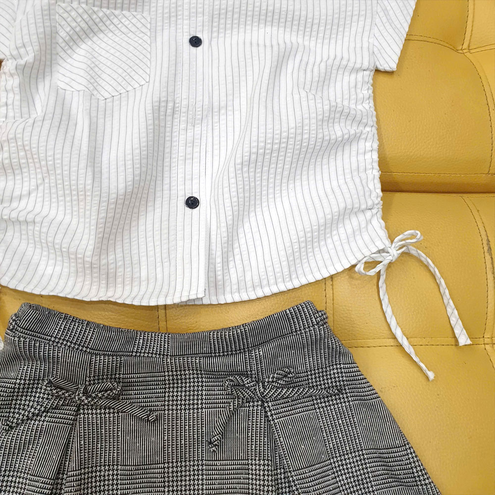 [13kg-56kg] Sơ mi kiểu cho bé gái thiết kế nhún eo mặc được 2 kiểu cực xinh màu trắng
