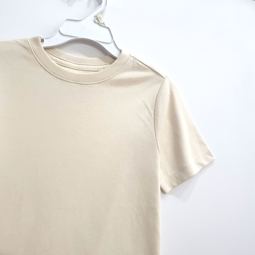 [18kg-65kg] Áo thun trơn hàng VNXK vải cực mịn mượt cho bé và người lớn màu kem