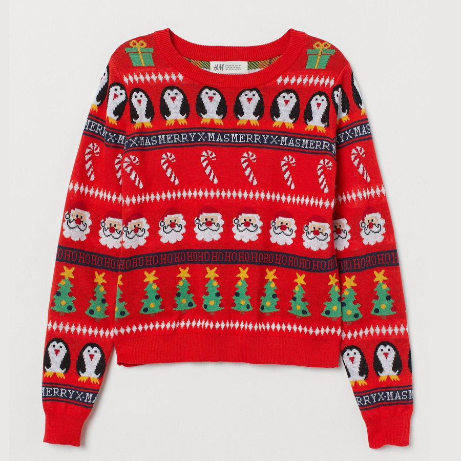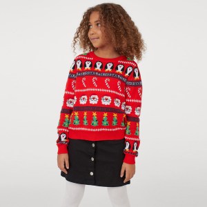 Áo len tay dài họa tiết Noel đỏ rực rỡ, xinh lung linh.