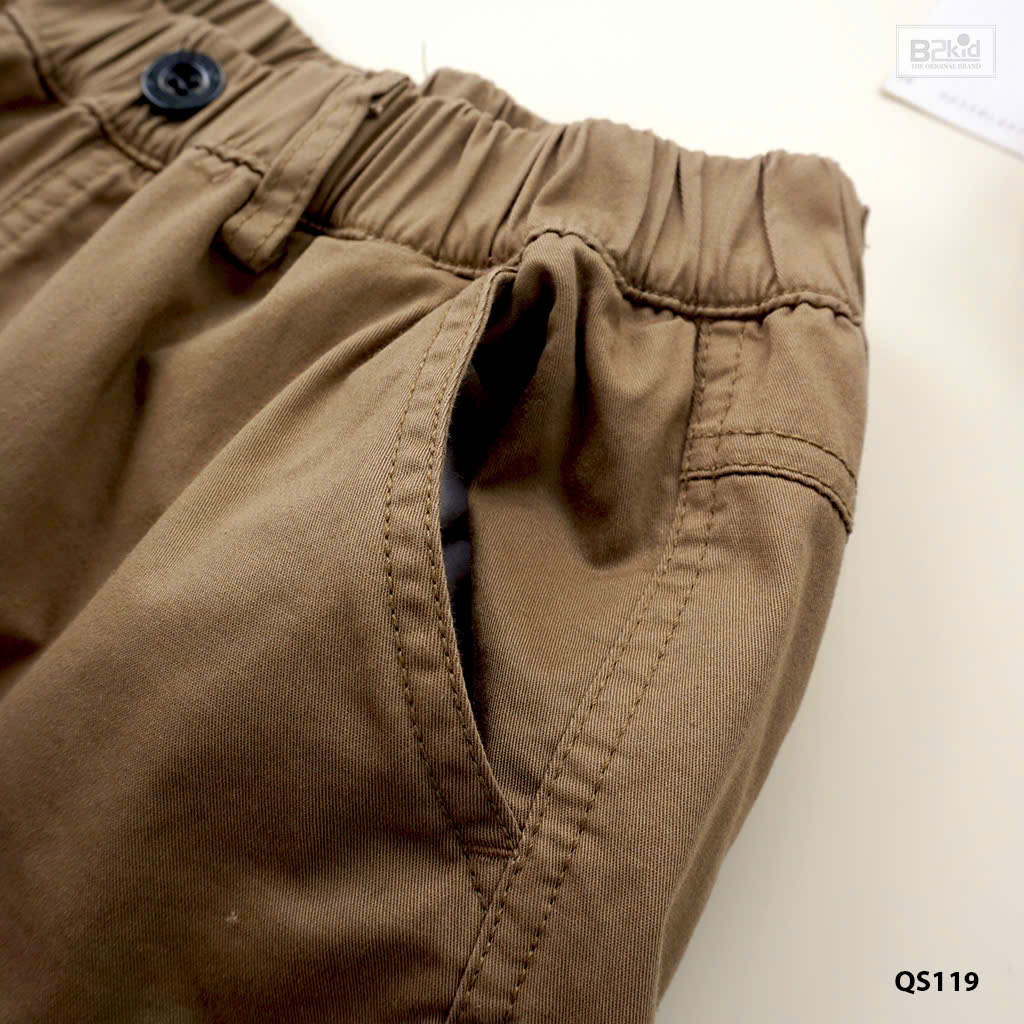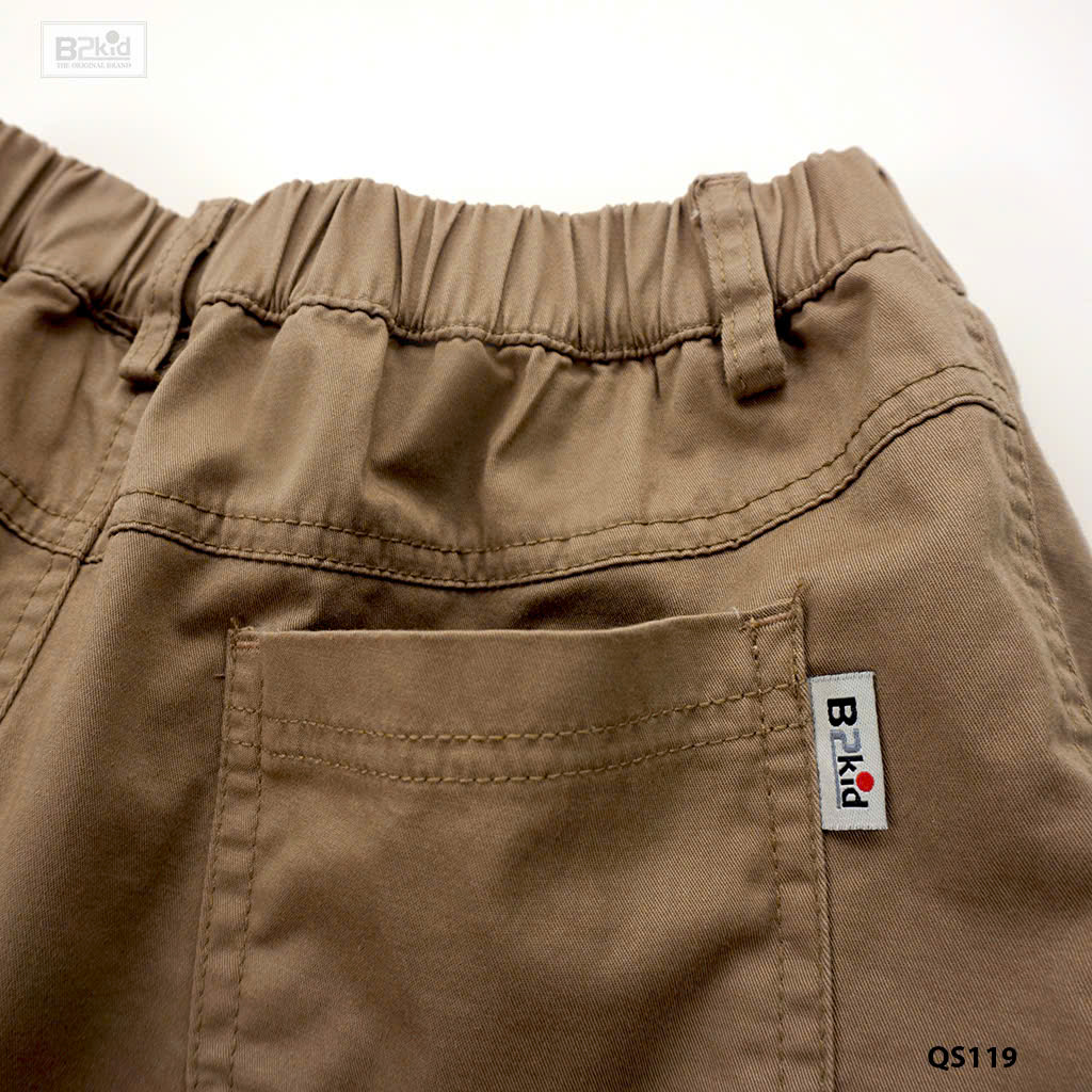 Quần lửng túi hộp vải kaki thun đẹp xuất sắc, vừa thoải mái lại tươm tất, bảnh bao. Quần dễ dàng phối với các mẫu áo có sẵn trong tủ đồ của bé.